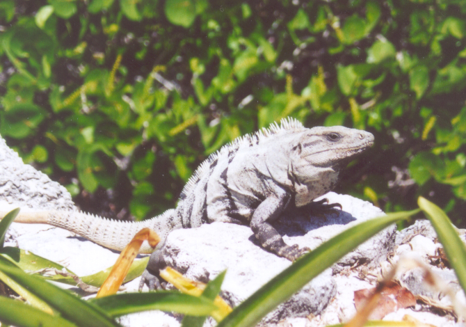 An iguana enjoys soaking up the sun on a rock down in Cancun.