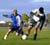 Slide tackle: NDSU mens soccer player slide tackles opponent.