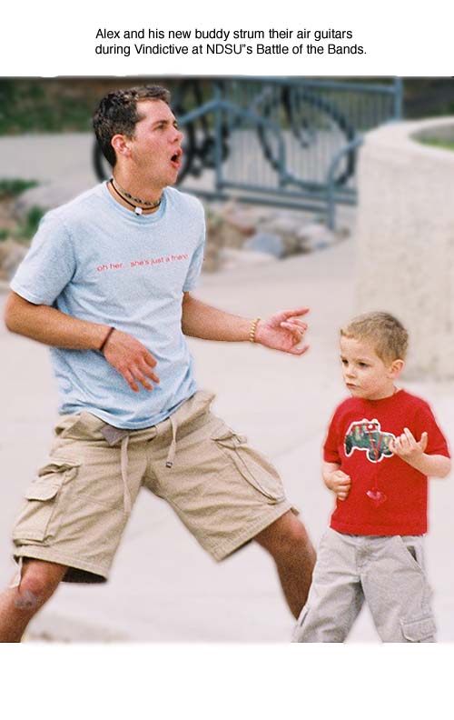 Alex and his new buddy strum their air guitars as "Vindictive" plays