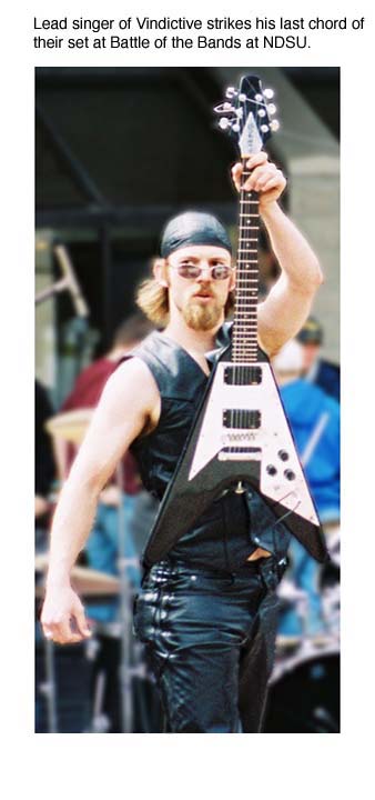 Lead singer of "Vindictive" strikes his last chord of the set at "Battle