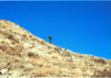 This is a picture of a buffalo eating near the road in Medora that was kind