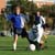 Slide tackle: NDSU mens soccer player slide tackles opponent.