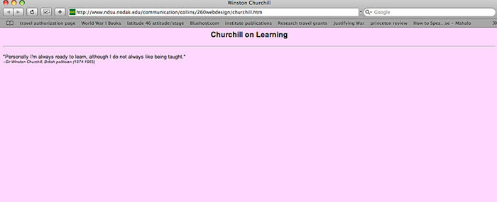 - Write header: Churchill on Learning. Close font, header, and center tag pairs.
