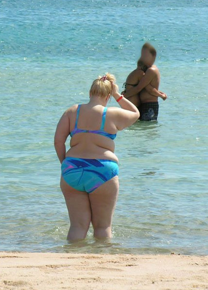 Consider the photo at left. Now this person probably will not like the way she looks on the beach. Who would?