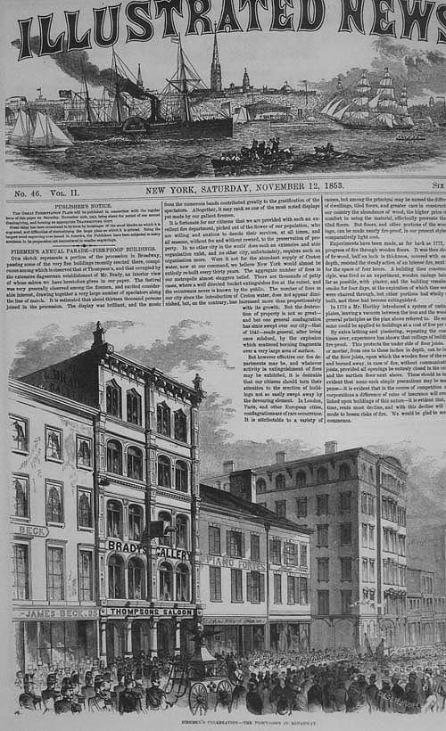 Interesting engraving showing Matthew Brady's famous photo studio on Broadway.