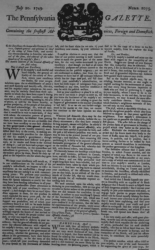Benjamin Franklin's newspaper became most influential in the American colonies.