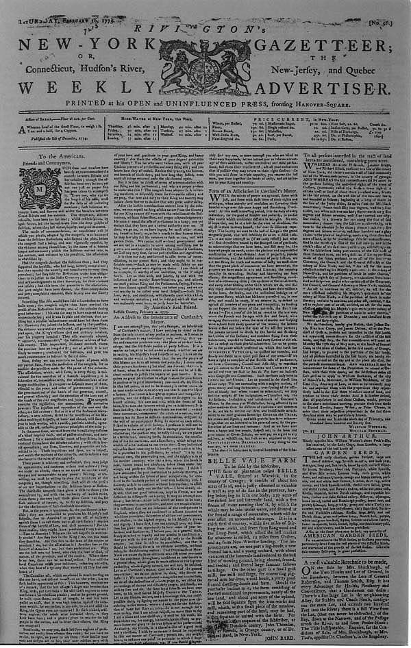 Rivington's New York Gazetteer, Feb. 15, 1775.