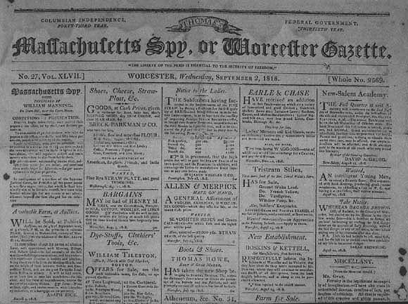 The newspaper of colonial patriot and journalism historian Isaiah Thomas ran