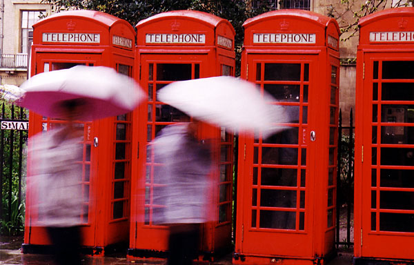 Phone booths near Great St. Mary's Church, Market Square, spring 2004.