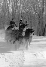 Draft horses have been used for many jobs in the past: logging, mining, building railroads, and hauling mail and passengers. The Hoglund Clydesdales haul passengers.